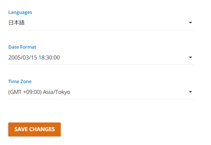 ③ Preferencesを選択し、「Languages:日本語」「Time Zone:Asia/Tokyo」へ変更する
